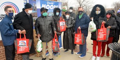 Residents lined up outside the 17th Ward office to receive bags of food, which included turkeys, dressing, and an assortment of vegetables. Ald. Moore especially sought to serve seniors, many of whom are unable to get out and shop.