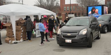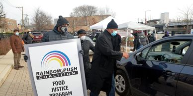 Harmony Community Church Food Pantry, serving Chicago's West Side, partnered with Rainbow PUSH and Ald. Michael Scott to distribute 100 bags of food to residents before the holidays. Rev. Jackson greeted each car as they drove by and received their groceries.