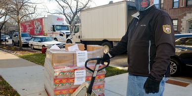 Rainbow PUSH Coalition staff and volunteers unpack truckloads of food donated by Jewel Food Store and Mariano's to prepare hundreds of bags of for delivery to families around Chicago throughout the cold holiday season. Photo by John L. Alexander