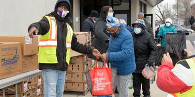 Braving frigid temperatures, staff and volunteers organized by Ald. Coleman handed bags of food to cars of families as they drove through the parking lot of Kennedy King College at 63rd and Halsted on Dec. 11, 2020.